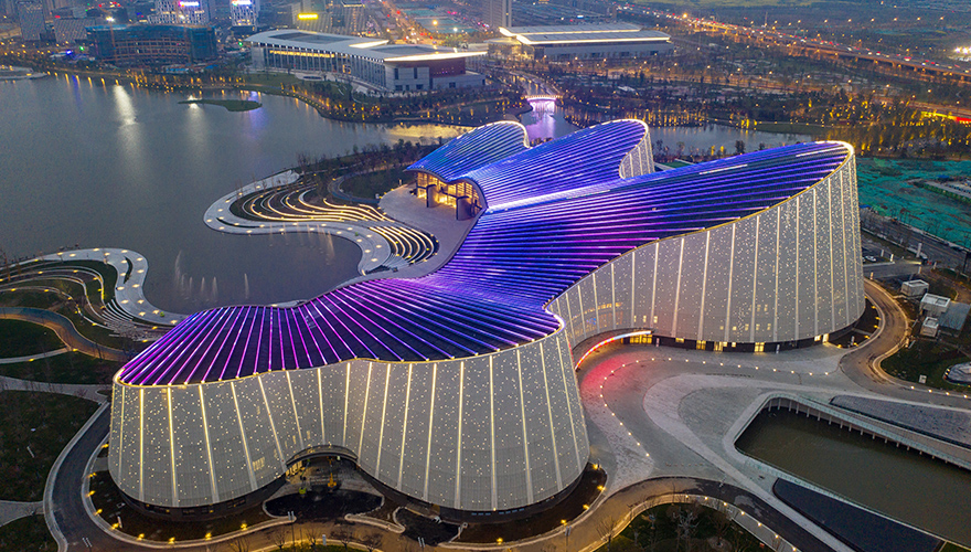 The Nantong Grand Theater consists of five functional buildings, namely an opera hall, a theater hall, a children's theater, a music hall, and a multifunctional hall. The theater hall is equipped with a drum turntable and a lifting platform, which can achieve scene changes in the multi-dimensional space of the stage.