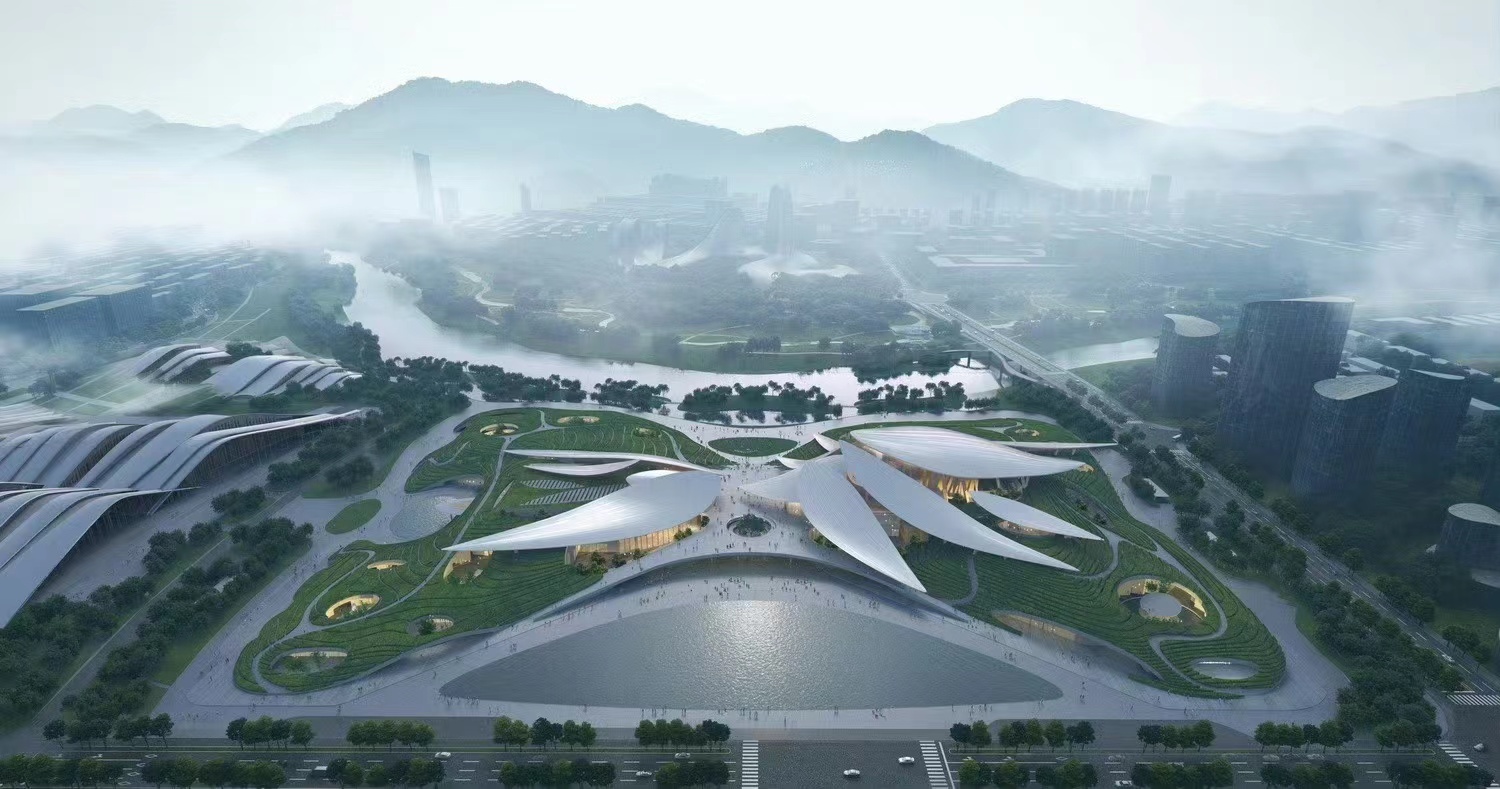浙江安吉是“中國竹鄉(xiāng)”、“中國白茶之鄉(xiāng)”,也是“綠水青山就是金山銀山”理念的誕生地。安吉文化藝術中心鄰水望山,位于安吉“兩山”未來科技城的核心啟動區(qū),項目所包含的大劇院、會議中心、文化館、工人文化宮、青少年活動中心、藝術教育中心等六處場館在此平緩鋪開,散落在青綠茶田和“竹葉”屋頂之下,如同一處大地藝術景觀。這里將是安吉未來聚集文化、生活、藝術、教育、自然的城市客廳。