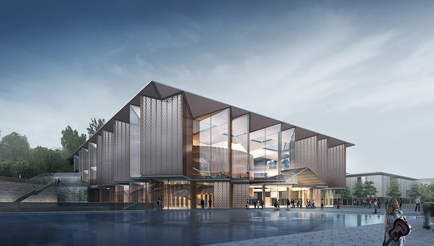 蘇州民族管弦樂(lè)團(tuán)音樂(lè)廳位于蘇州高新區(qū)科技城,占地面積約10.2畝,建筑面積約1.9萬(wàn)平方米,音樂(lè)廳內(nèi)部也采用了最先進(jìn)的抗震技術(shù)和聲學(xué)構(gòu)造。